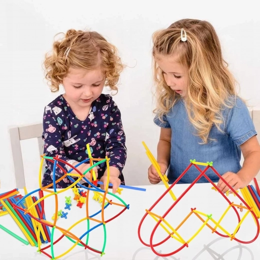 Die konstruktiven Strohhalme sind ein vielseitiges Spielzeug, das für Kinder ab 3 Jahren geeignet ist und die Möglichkeit bietet, verschiedene räumliche Konstruktionen zu bauen. Mehrfarbige Strohhalme unterstützen das Erlernen von Farben und sorgen dafür, dass den Kindern beim Spielen nicht langweilig wird.