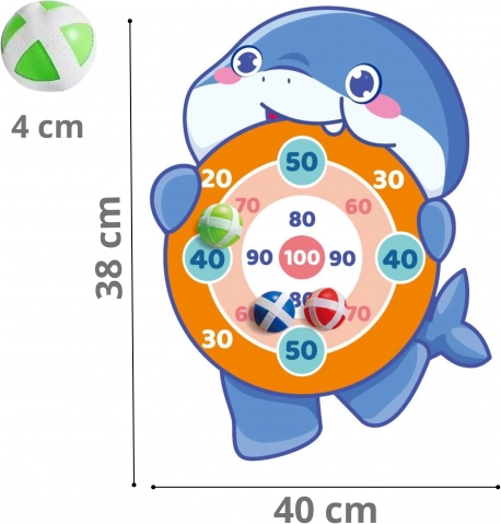 Tauchen Sie ein in die Welt des aufregenden Spiels mit einer süßen Hai-Zielscheibe von der Marke Woopie! Diese bunte und fröhliche Scheibe, ideal zum Aufhängen an der Wand, garantiert stundenlangen aktiven Spaß und stärkt gleichzeitig die Genauigkeit und Koordination Ihres Kindes. Im Set sind weiche Bälle enthalten, die Dank der Klettverschlüsse einfach an der Zielscheibe befestigt werden können, was das Zählen der Punkte erleichtert.