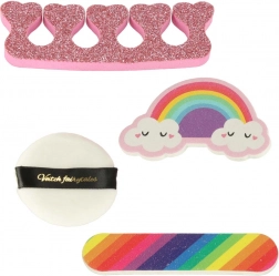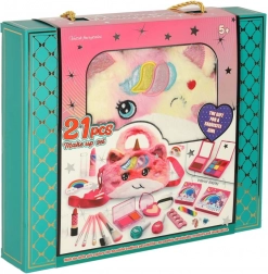 Das Set enthält eine Lidschattenpalette mit glitzernden und pastellfarbenen Tönen, Rouge für die Wangen und Lippenstifte für perfekte Farbkombinationen.