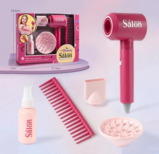 Dank des modernen Föhns und Zubehörs können Kinder Friseurspiele wie Profis genießen. Dieses Set fördert Kreativität, Fantasie und soziale Fähigkeiten durch Rollenspiele.