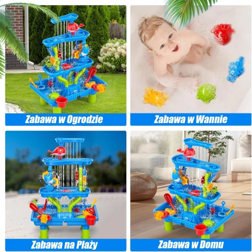 - 4-in-1 (Tisch-Wasserspiel, Sandkasten, Strandspielzeug, Badespielzeug)