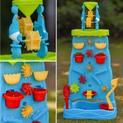 Diese farbenfrohe Wasserwand mit hohem Turm und Kaskaden bietet Kindern endlosen Spaß mit Wasser und Sand. Dank der modularen Konstruktion können sie die Anordnung von Trichtern, Rinnen und Rädern verändern und beim Fließen des Wassers Ursache und Wirkung beobachten. Das beidseitige Design ermöglicht gleichzeitiges Spielen von beiden Seiten – ideal für Geschwister und Freunde.