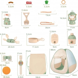 Das Woopie-Camping-Set bietet verschiedene realistische Zubehörteile, die Kindern ein authentisches Camping-Erlebnis bieten. Set ist ausschließlich für Spielzwecke bestimmt und nicht für echtes Campen geeignet.