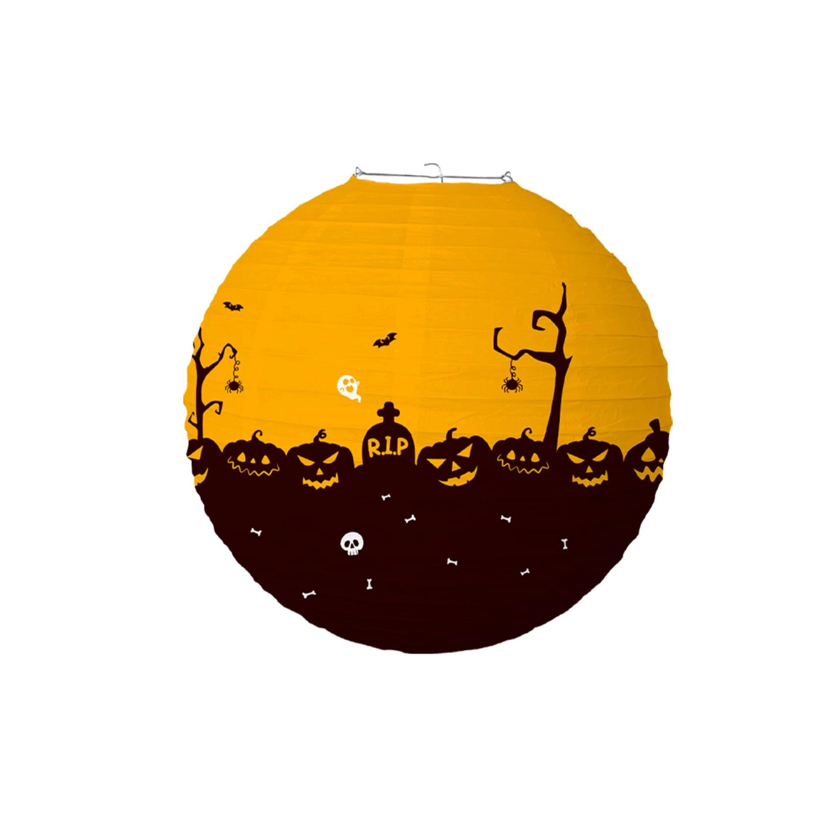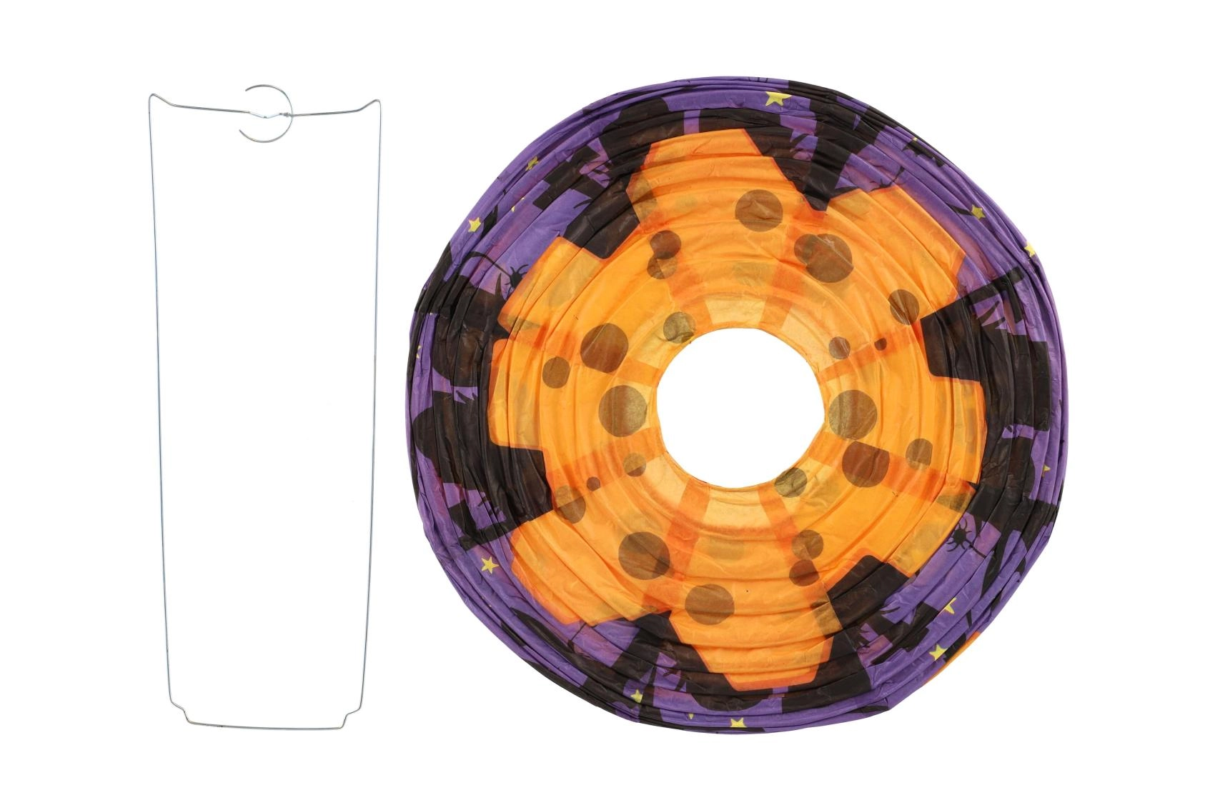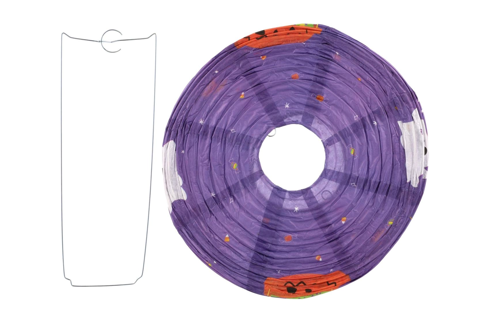 Dieser dekorative Lampion ist ideal für Halloween-Partys, die Dekoration von Kinderzimmern, Gärten und Schaufenstern. Die runde Form, markanten orange- und violettfarbenen Töne sowie die typischen Halloween-Motive sorgen für einen sofortigen Effekt. Dank Metallhaken und Innenrahmen lässt er sich leicht zusammensetzen und aufhängen.