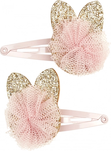Diese schönen Haarnadeln sind für kleine Modeprinzessinnen ab 3 Jahren gedacht. Das Set enthält zwei Metallhaarnadeln mit pinkem metallischem Glanz, die mit einer goldenen Applikation in Katzenform verziert sind und durch einen pinken Tüll-Pompon ergänzt werden. Dieses zarte Detail wird sicherlich jede kleine Romantikerin verzaubern. Dank des Schnappmechanismus halten die Nadeln den ganzen Tag zuverlässig im Haar. Ideal für den täglichen Gebrauch und besondere Anlässe.