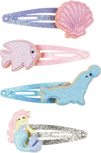 Die Haarklammern Anette bringen einen magischen Touch in die tägliche Frisur mit Motiven von Meerjungfrauen und anderen märchenhaften Kreaturen. Jede Klammer schimmert wunderschön und verleiht deiner Frisur einen einzigartigen Stil. Dank des Schnappmechanismus bleiben sie den ganzen Tag zuverlässig an Ort und Stelle, was sie zu einem idealen Accessoire für kleine Fashionistas ab 3 Jahren macht.