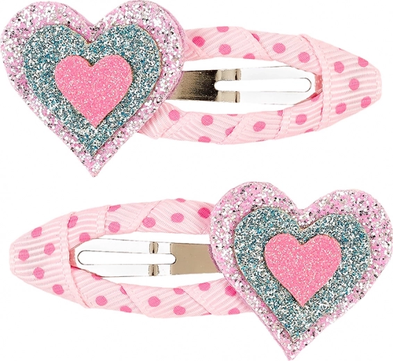 Das entzückende Set aus zwei Haarklammern, verziert mit Herzmotiven, bringt Magie in jede Kinderfrisur. Der Metallteil der Klammern ist sorgfältig mit Ripsband umwickelt, was ihren eleganten Look und die Sicherheit beim Tragen gewährleistet.