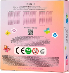 Entdecke das lustige Set aus Lippenbalsamen in Violett, Rosa und Orange. Die Balsame sind dermatologisch getestet, also völlig sicher und geeignet für die empfindliche Kinderhaut: