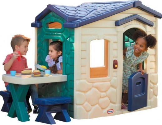 Das Kinderhaus von Little Tikes bietet eine lustige Glocke und ein Picknick-Set zur Förderung der Kreativität.
