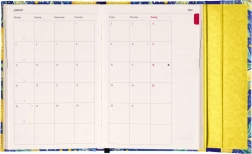 Dieser stilvolle Kalender bietet eine horizontale Wochenansicht auf zwei Seiten, die einfaches Planen und Raum für Notizen ermöglicht. Es gibt auch praktische Monatsübersichten, die ideal für die Planung von Ferien oder Urlaub sind. Mit seiner kompakten Größe von 11 x 16 cm ist er ideal für den täglichen Gebrauch.