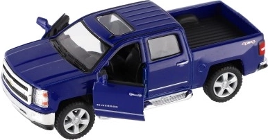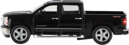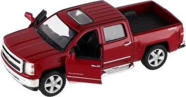 Erleben Sie eine detailreiche Replik des ikonischen Pickups CHEVROLET Silverado 2014. Eine Karosserie aus Metall mit Kunststoffteilen, hochwertige Lackierung und originalgetreue Proportionen erfreuen kleine Fahrer wie auch Sammler. Das Auto verfügt über öffnende Türen, sodass der aufwendig gestaltete Innenraum sichtbar wird.