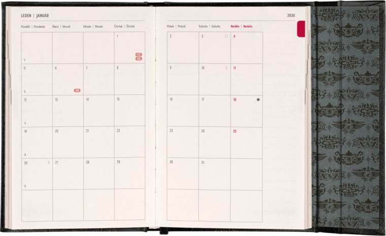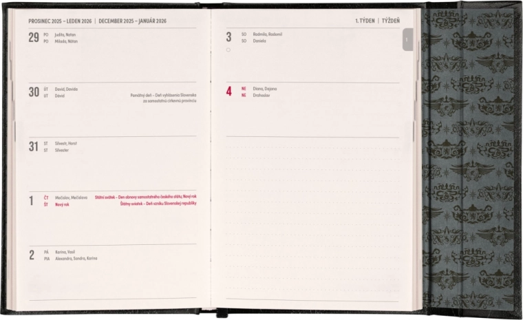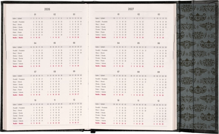 Der wöchentliche Planer mit praktischem magnetischen Verschluss ist die ideale Wahl für alle, die ihre Pläne übersichtlich im Griff haben möchten. Er bietet ein tschechisches und slowakisches Kalendarium und Platz für Notizen.