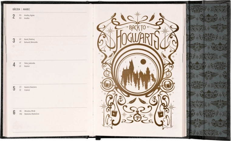 Wöchentlicher Harry Potter Lumos 2026 Planer mit magnetischem Verschluss und tschechischem Kalendarium. Planen Sie im Taschenformat!