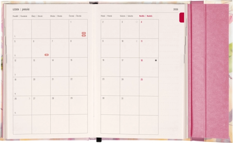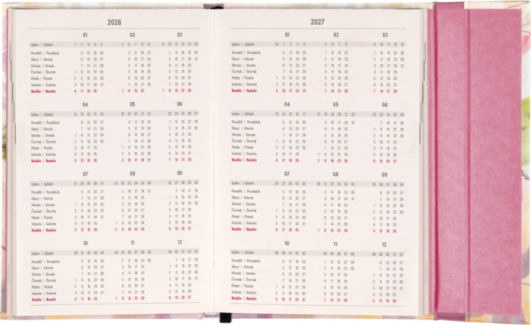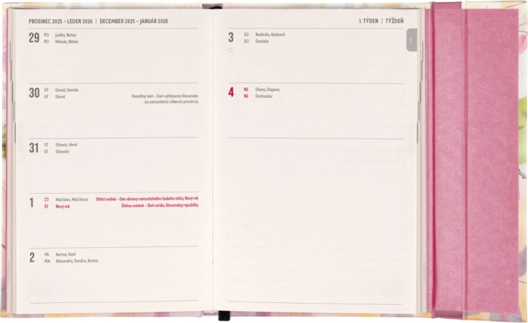 Wöchentlicher Planer mit magnetischem Verschluss ist ein praktischer Helfer für jeden, der seine Pläne immer übersichtlich zur Hand haben möchte. Es zeichnet sich durch ein horizontales Layout und einen Kalender für die tschechische und slowakische Republik aus.