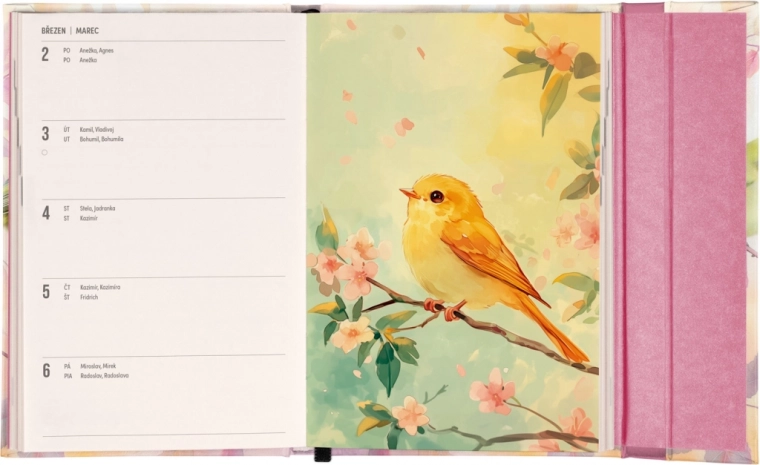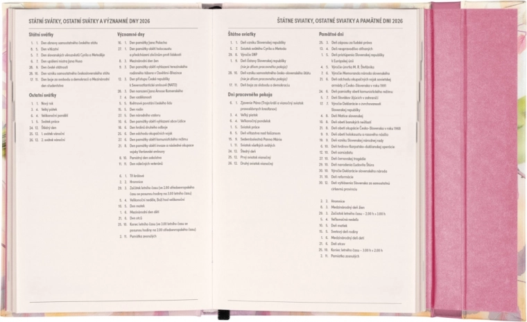 - Tschechisches und slowakisches Kalendarium bietet Platz für Notizen.
