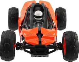 Die Steuerung auf 2,4 GHz gewährleistet eine stabile Reichweite von etwa 30–40 m und problemloses Racing mit mehreren Autos zugleich. Stoßabsorbierende Dämpfer an beiden Achsen glätten Unebenheiten, und die großen Geländeräder geben Sicherheit auf Schotter, Gras und Asphalt.