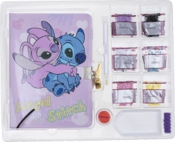 Entdecken Sie die Freude am Gestalten mit dem eleganten, abschließbaren Crystal Art Notizbuch. Mit den farbigen Steinchen kreieren Sie mühelos ein funkelndes Design mit dem beliebten Motiv Stitch und Angel. Die linierten A5-Seiten sind ideal für Notizen, Tagebuch, Schulaufschriebe und kreative Ideen.