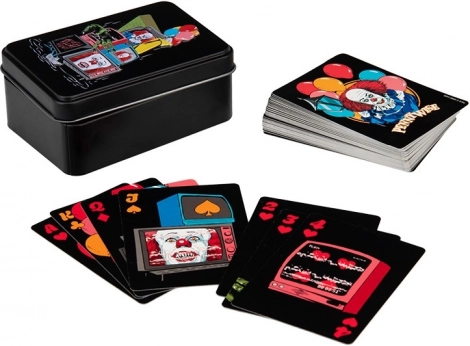 Tauchen Sie ein in die Welt der Spannung mit den Pennywise-Spielkarten, die sicher in einer stilvollen Blechbox aufbewahrt werden. Dieses Set enthält 54 hochwertige Karten mit lizenziertem Motiv.