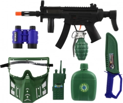 Bereiten Sie sich auf Abenteuer mit diesem militärischen Set vor, das ein Kunststoff-Klappgewehr und thematisches Zubehör enthält und ideal ist, um Vorstellungskraft und Bewegungsspiele zu fördern.