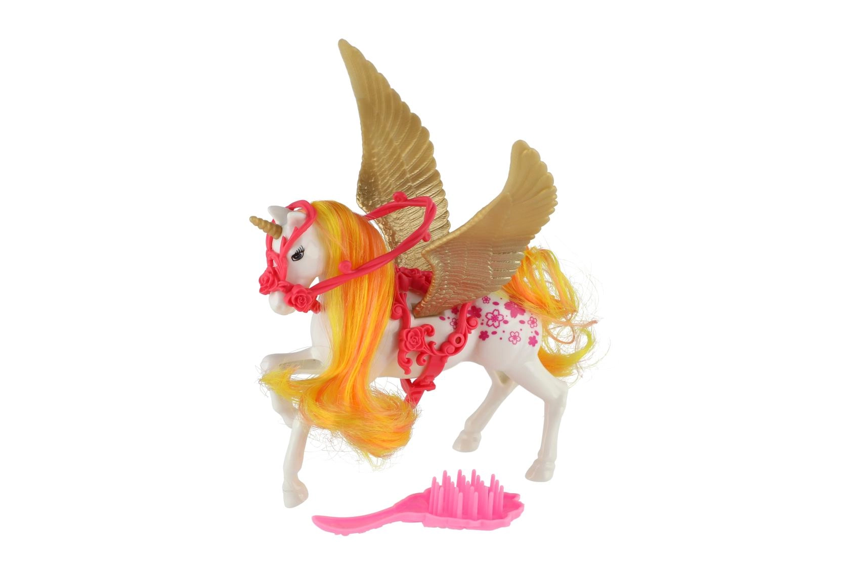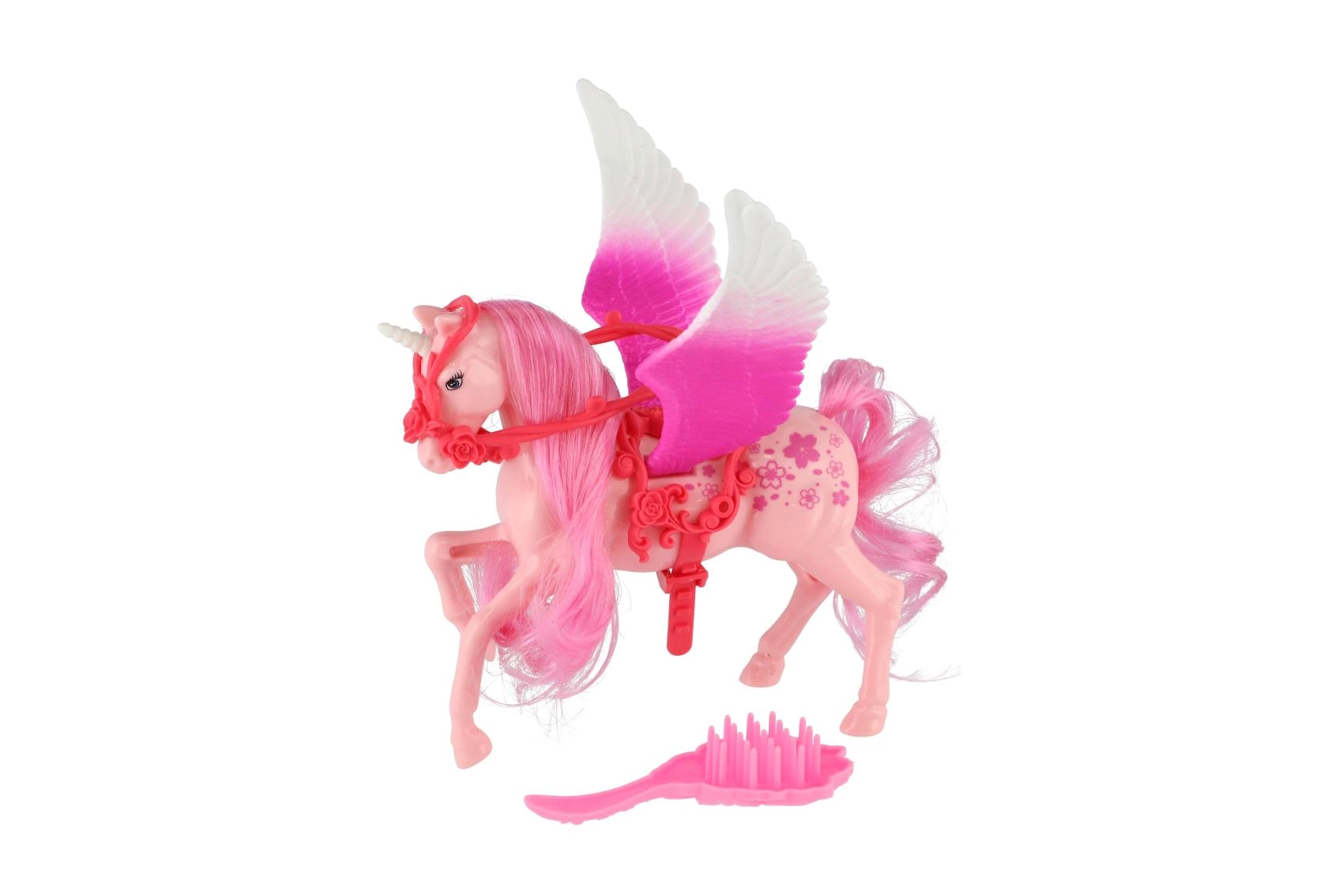 Dieses niedliche Einhorn mit Flügeln hat eine lange Mähne und einen Schweif, die Kinder nach ihrer Fantasie kämmen und stylen können. Dank des beiliegenden Kamms ist die Pflege der Mähne einfach und macht Spaß. Das Spielzeug fördert die Feinmotorik, die Kreativität und regt zur Rollenspiel an.