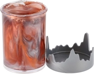 Der robuste Becher schützt den Schleim vor dem Austrocknen und lässt die eindrucksvollen Farben auch bei der Aufbewahrung zur Geltung kommen.
