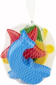 Gestalten Sie am Strand oder im Sandkasten wunderschöne Sandkuchen mit dem Set aus 4 Kunststoffformen mit Meeres­tiermotiven. Das praktische Netz-Set ist bereits ab 12 Monaten geeignet und überzeugt durch leuchtende Farben und einfache Pflege. Ideal zur Förderung der Feinmotorik, Kreativität und für Spielspaß an der frischen Luft. 4 Formen, Meeres­tiere, robuster Kunststoff, leicht und sicher.