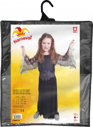 Verwandeln Sie Ihr Kind in eine bezaubernde Hexe mit diesem schwarzen Kostüm. Das Kostüm besteht aus einem Kleid mit transparenten Ärmeln, die mit einem Spinnennetzmotiv verziert sind, um einen authentischen Hexenlook zu erzielen. Perfekt für Halloween-Partys oder thematische Feiern.