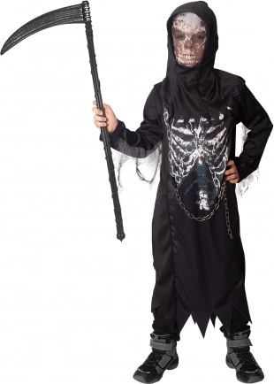 Das Karnevalskostüm für Kinder, Sensenmann, ist für Kinder im Alter von 6-8 Jahren mit einer Größe von 117-128 cm entworfen. Dieses Kostüm umfasst: