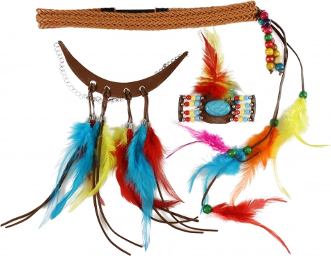 Dieses wunderschöne indianische Zubehörset ist ideal für alle, die ihrem Kostüm eine authentische Note verleihen möchten. Es enthält drei wichtige Elemente, die Ihr Aussehen vervollständigen: