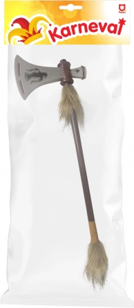 Indianische Axt aus PVC mit Fellimitat-Elementen, ideal für Kostüme. Verbessern Sie Ihr Outfit!