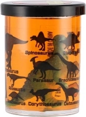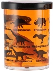Der Becher ist mit Silhouetten und Namen von Dinosauriern (z. B. Stegosaurus, Triceratops, Spinosaurus) verziert, wodurch spielerisches Lernen gefördert wird. Ideal als kleines Geschenk, Belohnung oder Ergänzung für die Kinderparty.
