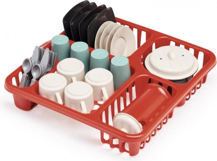 Großes Geschirrset mit Abtropfgestell für Kinder