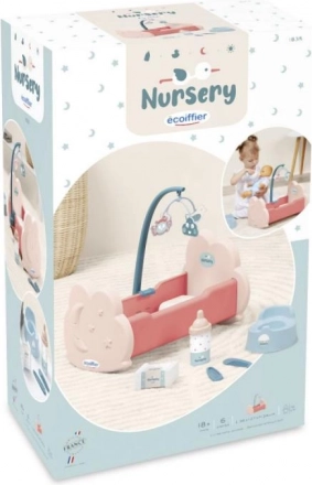 Erstaunliches Kinderbett für Puppen mit komplettem Zubehör für das perfekte Spiel. Enthält ein Mobile über dem Bett, eine Flasche, ein Töpfchen und einen Kamm für das beste Puppenpflegeerlebnis.