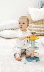 Abrick Turm mit Bällen ist das ideale Spielzeug für kleine Kinder, das die Motorik und Koordination fördert. Dieses farblich sanfte Set mit einem Bärchen an der Spitze bringt stundenlangen Spaß.