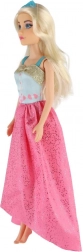 Der lange rosa Rock mit Glanz und das kontrastierende blaue Oberteil verleihen der Puppe einen außergewöhnlichen Look – ideal für Ball und Modenschau.