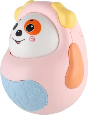 Fröhlicher Plastik Hund Roly Poly mit Ton, ideal zur Entwicklung der Fähigkeiten von Kindern ab 3 Monaten, 10 cm groß.