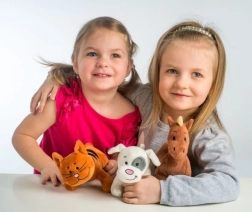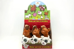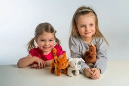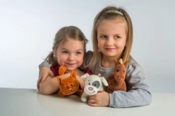 Beim Drücken des Bäuchleins gibt das Tier ein authentisches Geräusch von sich – Kinder erkennen leicht, wie die Katze miaut, der Hund bellt oder das Pferd wiehert.