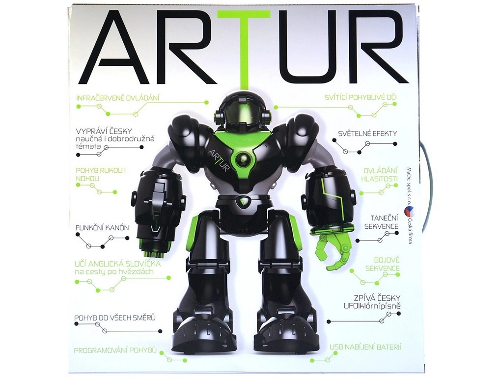 Der interaktive Roboter Artur ist Teil der Weltraumbesatzung der Zigybot und bringt lehrreiche sowie abenteuerliche Themen auf Tschechisch. Artur kann sich bewegen, englische Wörter lernen und verfügt über eine funktionstüchtige Kanone für Plastikgeschosse für endlosen Spaß.