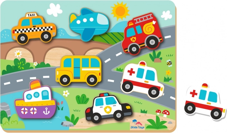 Dieses Einlegepuzzle ist ein großartiges Werkzeug zur Förderung der Feinmotorik und zur Einführung von Verkehrsmitteln bei Kindern. Es enthält 7 Einlegeteile und bunte Illustrationen, was dieses Spielzeug nicht nur zu einem unterhaltsamen Element, sondern auch zu einer schönen Dekoration für das Kinderzimmer macht.