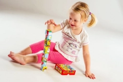 Das Spiel mit den Würfeln fördert außerdem das Verständnis von Balance beim Stapeln von Türmen und das Verständnis von Ursache und Wirkung beim Umstoßen.
