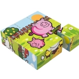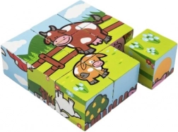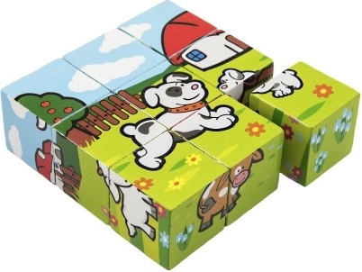 Diese Holzwürfel bieten Kindern Spaß beim Zusammensetzen verschiedener Bilder aus dem häuslichen Umfeld. Jedes Set enthält sechs verschiedene Tiermotive, die Kinder entdecken können.