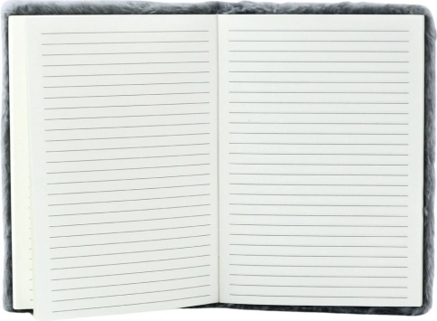 Das Plüschheft liniert mit dem gestickten Motiv des grauen Häschens ist ein bezauberndes und nützliches Produkt, das sofort ins Auge fällt. Der sanfte Plüschumschlag in gedämpftem Grau ist mit einer Stickerei des Häschen-Gesichts mit rosa Ohren und Wangen sowie zwei blauen Herzchen verziert, die dem Produkt Charme und kindliche Freude verleihen.
