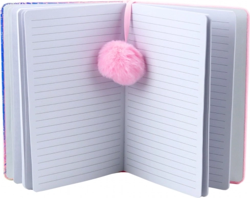 Die Rückseite des Notizbuchs besteht aus weichem, rosa Material, angenehm zu berühren. Innen finden Sie 80 linierte Seiten – ideal für Notizen, Aufzeichnungen, Pläne oder Tagebuchführen. Das Notizbuch verbindet Funktionalität mit einem märchenhaften Aussehen, das sowohl Kinder als auch Erwachsene begeistert, die Magie und den Fantasy-Stil lieben.