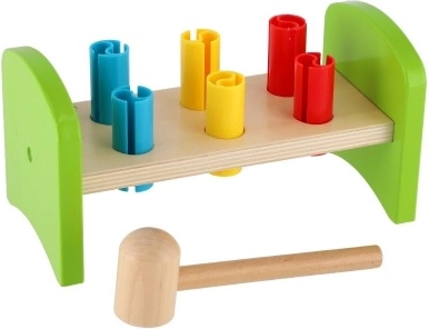 Diese bunte Holzhammerbank mit Plastikeinsätzen von Classic World ist ein hervorragendes Werkzeug zur Förderung der motorischen Fähigkeiten Ihrer Kinder. Mit neuem Design, das Stabilität und Verspieltheit kombiniert, genießen Kinder viel Spaß.