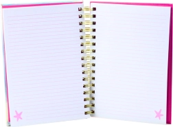 Die Innenseiten haben 90 Blätter mit rosa Linien, was ideal für Schulnotizen, kreatives Schreiben oder das Führen eines Tagebuchs ist. Die feste Spiralbindung erleichtert das Öffnen und Umblättern. Das A5-Format ist praktisch für den täglichen Gebrauch – in der Schule, zu Hause oder bei der Arbeit.