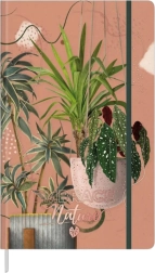 Ästhetischer Notizblock mit pflanzlichem Motiv, ideal für diejenigen, die die Ruhe der Natur in ihrer täglichen Organisation schätzen. Der harte Einband in warmen Ziegeltonfarben ist mit sorgfältig gestalteter Grafik von Zimmerpflanzenblättern verziert, was dem gesamten Design einen subtilen, natürlichen Charakter verleiht. Die Aufschrift „Embrace Nature“ lädt subtil dazu ein, innezuhalten und Gedanken, Pläne oder Aufgaben aufzuschreiben.