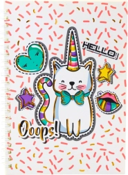 Das Notizbuch mit Einhornkatzenmotiv ist ideal für Kinder und Jugendliche, die fröhliche, märchenhafte Muster lieben. Weiße Basis mit rosa Details hebt sich durch ein farbenfrohes Bild einer Katze mit einem regenbogenfarbenen Horn und Schwanz hervor.