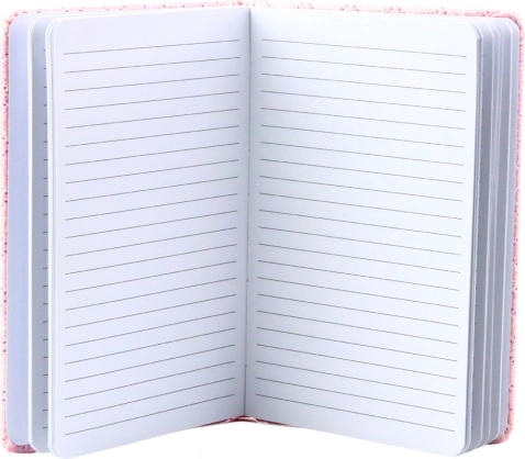 Ein äußerst praktisches und stilvolles Notizbuch mit einem brokatrosa Einband, ideal für alltägliche Notizen und Planungen. Der Einband mit laminiertem Überzug sorgt dafür, dass der Brokat an seinem Platz bleibt, selbst bei intensiver Nutzung. Verschiedenfarbige Aufnäher verleihen dem Heft einen modernen Look.