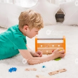 Dieses Holz-Werkzeugset begeistert alle kleinen Tüftler, die zu Hause gerne mithelfen. In der stabilen Holzbox finden sich alle Utensilien für sicheres und spielerisches „Reparieren“. Das Spielzeug fördert die Hand-Auge-Koordination, regt die Kreativität an und vermittelt Kindern die Grundlagen handwerklicher Tätigkeiten.