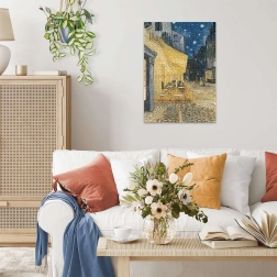 Das Thema 'Caféterrasse bei Nacht' ist inspiriert von einem berühmten Gemälde, das den Abendzauber und die künstlerische Schönheit in Ihr Zuhause bringt.